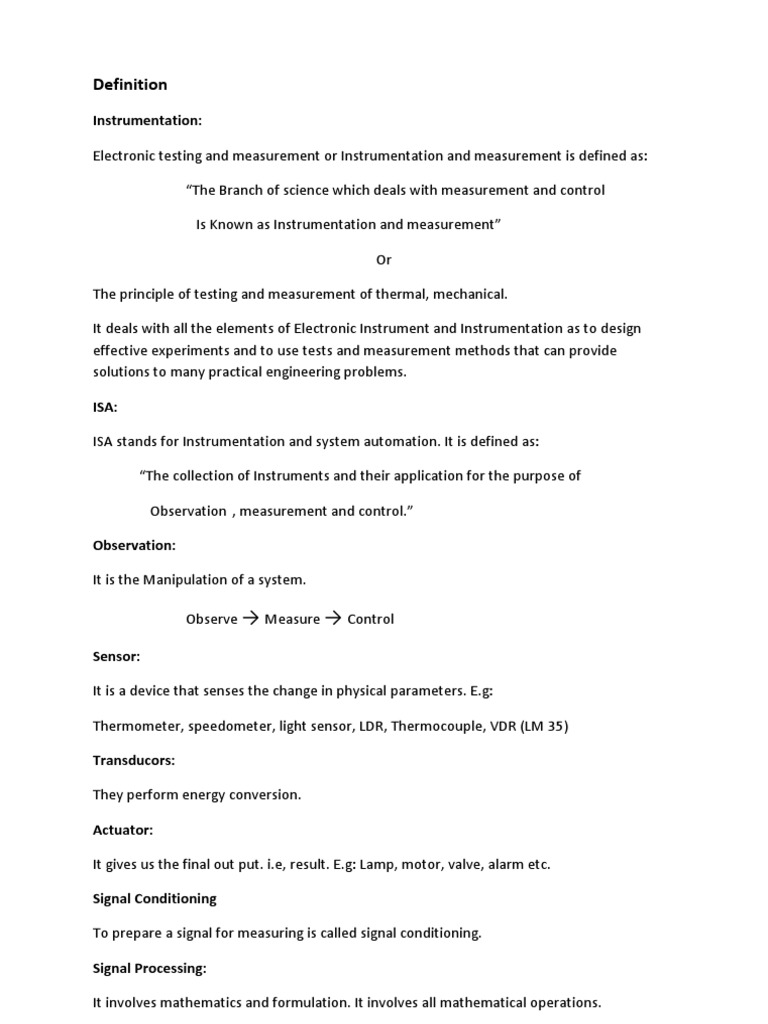 Instrumentation Basics Instrumentation Terms Definition