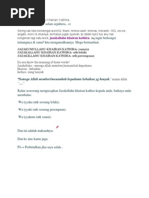 Erti Dan Maksud Jazakumullah Khairan Katsiran Azhan Co