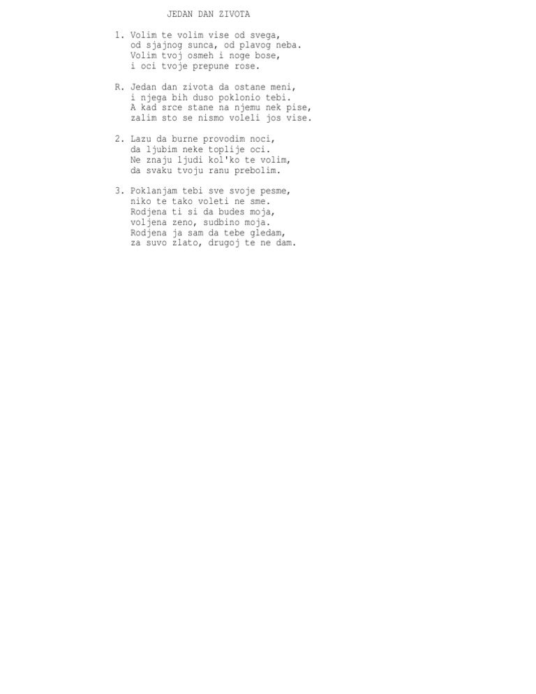 Jedan Dan Zivota Da Ostane Meni I Njega Bih Duso Poklonio Tebi Home Facebook