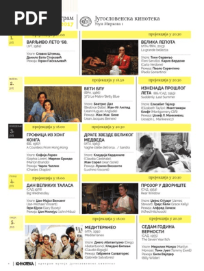 Kinoteka program. Free admission 19 22 march during kinoteka film screenings. августа јер је најновијом одлуком кризног штаба дозвољен рад биоскопа наравно уз поштовање свих епидемиолошких мера. Slovenska kinoteka je filmski muzej ki s prikazovanjem hranjenjem restavriranjem objavljanjem in razstavljanjem filmskega ter obfilmskega gradiva skrbi za dvigovanje filmske kulture. мартовски програм југословенске кинотеке обележиће филмови са феста али и ретроспектива кирка дагласа као и документарна продукција ђоке богдановића из 1913.