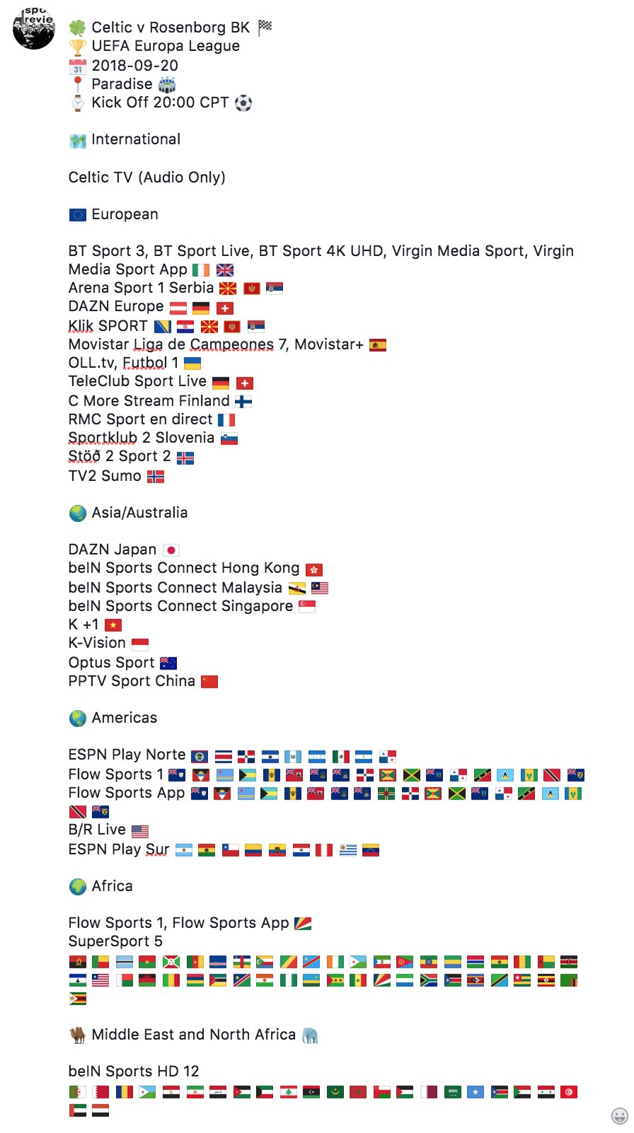 Celts On Tv On Twitter Celtic V Rosenborg Bk Uefa Europa League 2018 09 20 Paradise Kick Off 20 00 Cpt Watch Live In 129 Different Countries