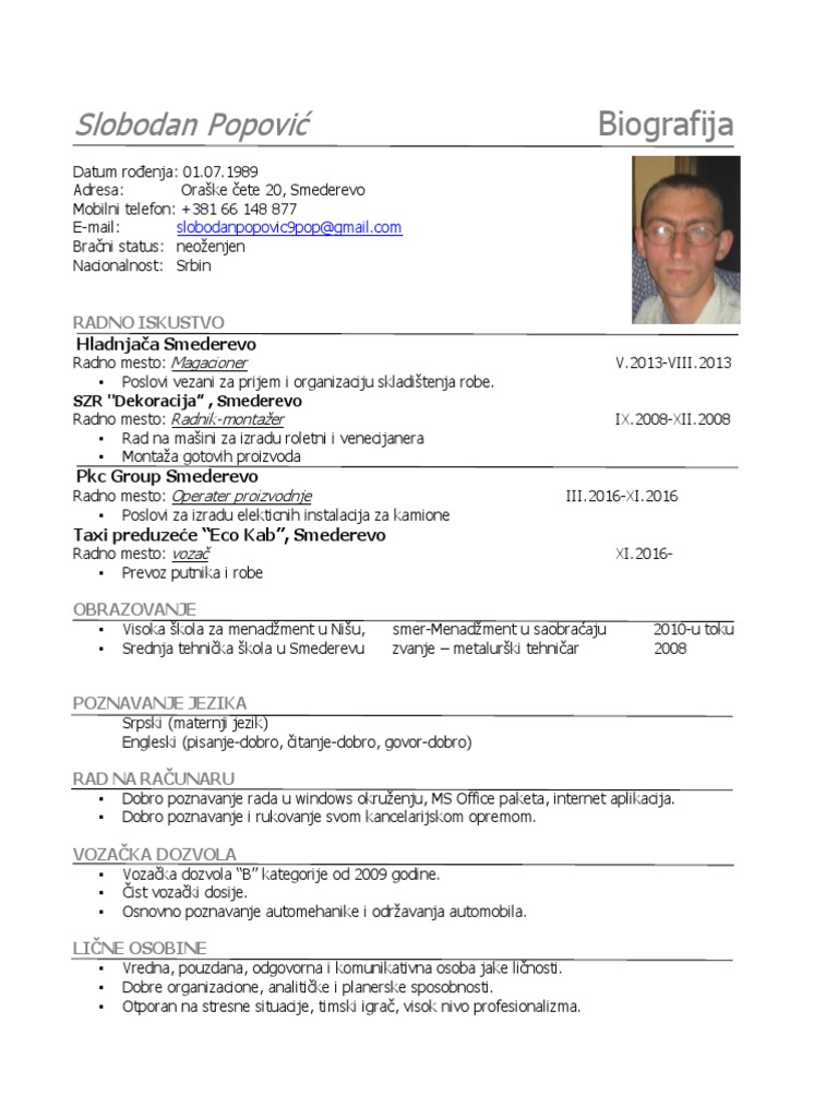 Licne Osobine Za Biografiju