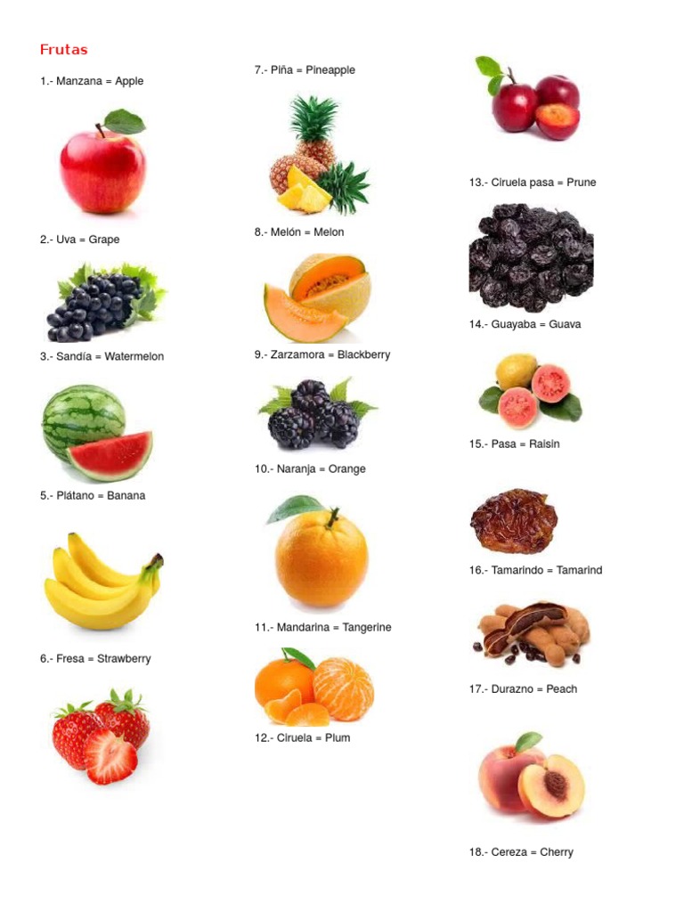 20 Frutas En Ingles Y Espanol